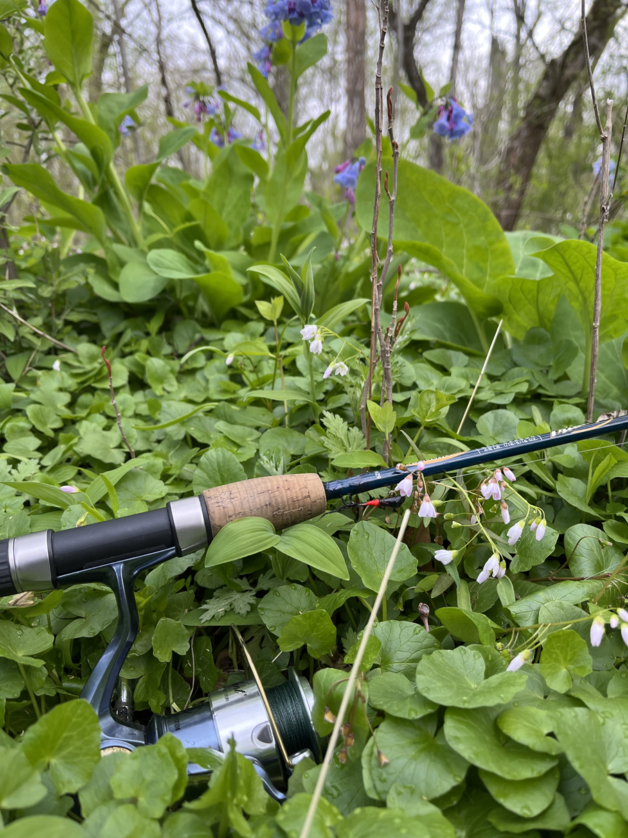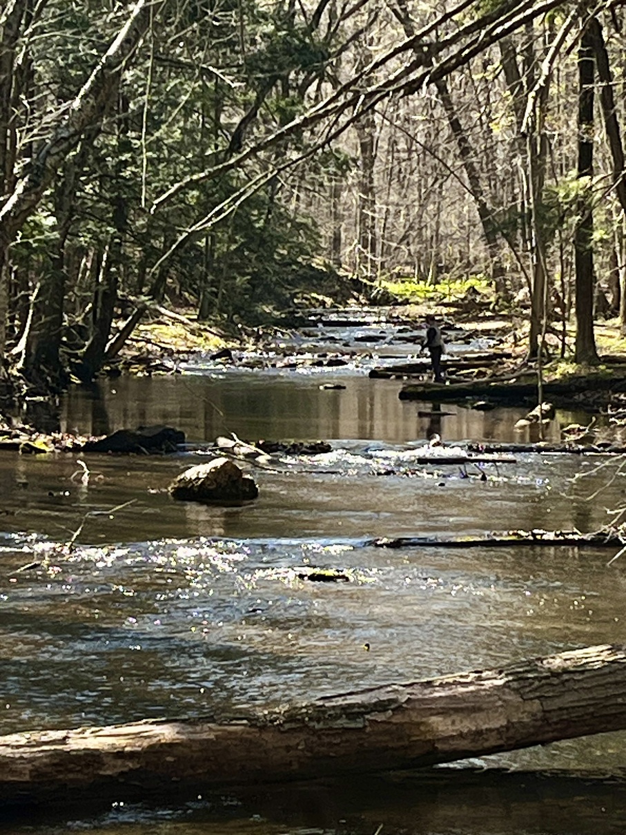 During Easter Break, I took the family camping to Cunningham Falls in Frederick County and we enjoyed beautiful, chilly hiking for three solid days. In between hikes, we walked along Big Hunting Creek, made famous as a fly fishing creek over the past century by angler U.S. presidents (Jimmy Carter most notably), local fly clubs, and the like. I paid my respects by fishing the 5-weight, hoping to hook into a native Brook Trout. I had one good hookup but the wily fish spit the hook. Nonetheless, the visit to this famed water was a first for me and it is a gorgeous stretch of clean water with boulders, river stone, laydowns, and juicy holes nestled between Appalachian outcroppings and hemlocks.