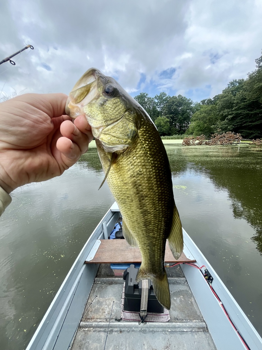Home from the beach and the salt, I turned my attention to smaller, fresher waters. Having recently purchased a new trailer for my 12ā jon boat, I could now take the vessel to the millponds of the Eastern Shoreāsomething I couldnāt really do for the past decade. Go figure. So I planned a few trips to Unicorn, Tuckahoe, and Wye Mills lakes to fish for Largemouth Bass. Finesse fishing wacky-rigged stickworms on spin outfits in the mid-summer heat around the lakesā laydowns and deeper structure (mostly sunken Christmas trees) produced a slew of largies, but none bigger than a couple pounds. Yet, it was pure joy fishing for bass again. I hadnāt truly targeted them the way I prefer in a very long time, so these trips were a treat. I will note that Unicorn Lake in Millington was saturated/choked out with algae and weed growth each of the two times I drove out there (two months apart). This doesnāt bode well for this lakeās health overall. I plan to visit Unicorn in the spring and will report. The other two were clean and quite fishable.