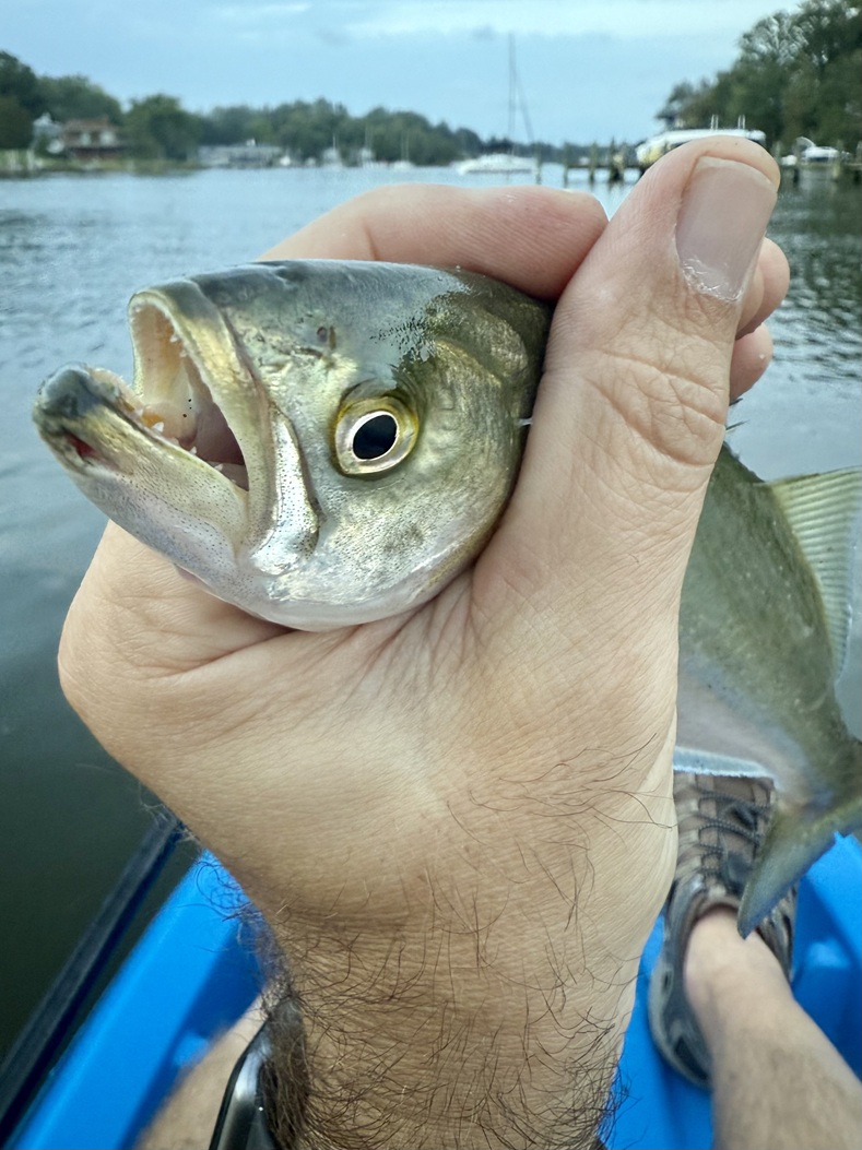 Come August, I procured a couple small kayaks for my sonās birthday and outfitted one of them with a few fishing-friendly accoutrements, like rod holders. This month and into September, October, and even late November, Iād make a number of morning runs in the kayak to the back of Valentine Creek to see what was biting. On those trips, I took just two light spinning rods and threw just two styles of luresāa small 1/8oz jighead tipped with tiny paddletails and an inline spinnerbait. The species caught: White Perch (including a pack of jumbos on a couple outings), baby Bluefish, Striped Bass, Chain Pickerel, and a surprise Largemouth Bass! The action in the kayak was actually very, very good this fall. A good sign for sure.