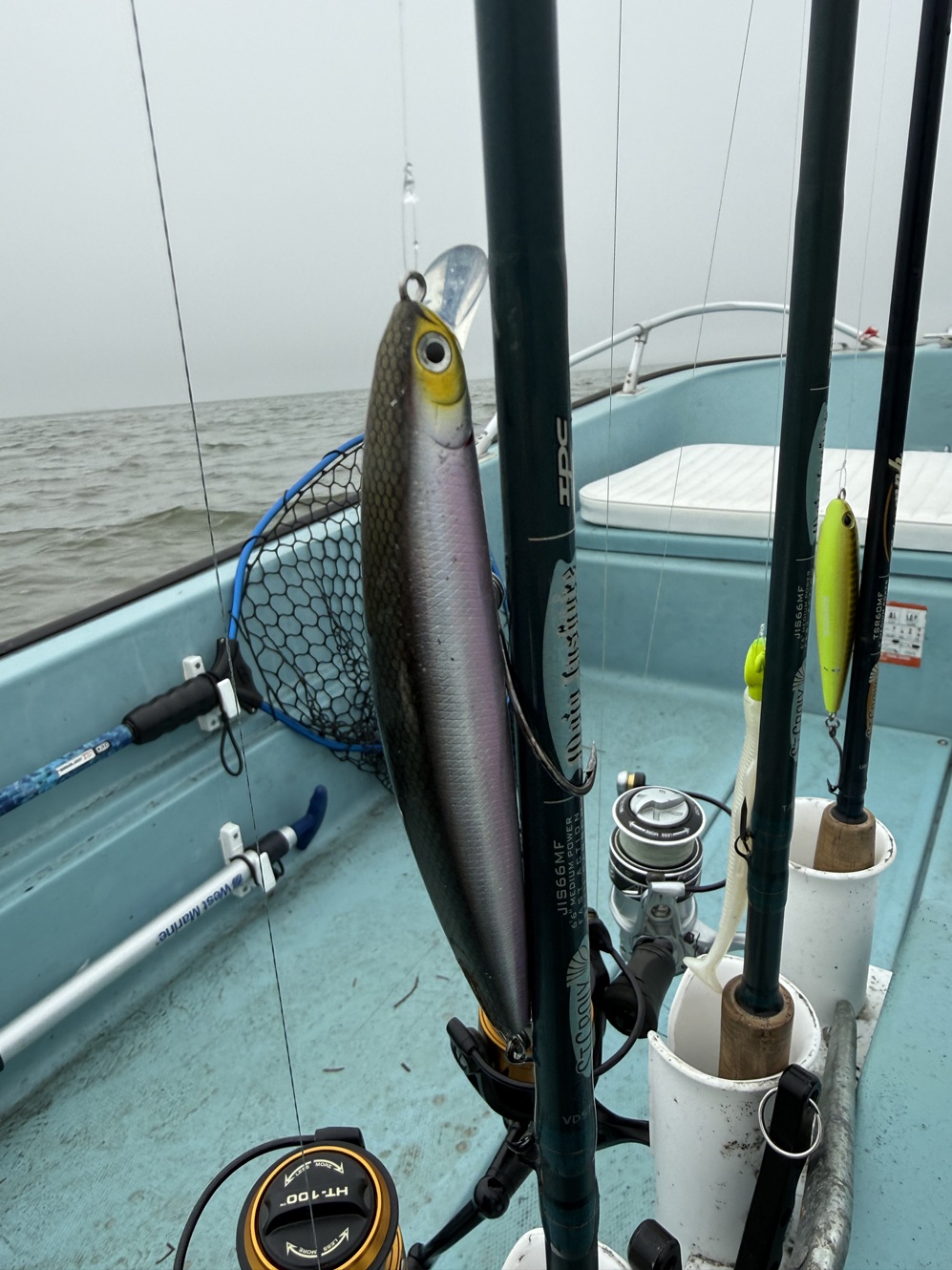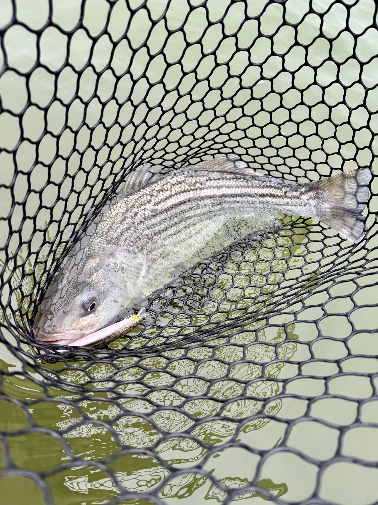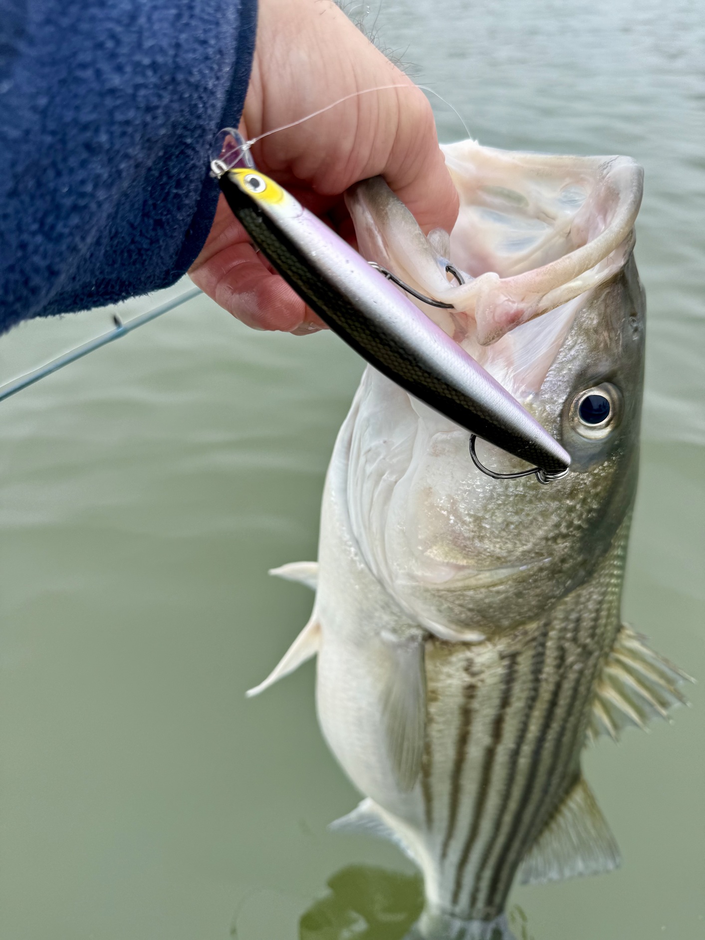 And like every good fish story, I did hook up with a mammoth that got away (bigger than the 40ā+ striper?). And it was awesome! This fish followed my lure to within a few feet of the boat before zooming in to engulf it wholly. I got to see this beast bass swim up and inhale the lure, turn quickly to swim away, and peel drag. I was fortunate to play this fish for about 20 seconds before its own fortune allowed it to unbutton. Well done, fish!