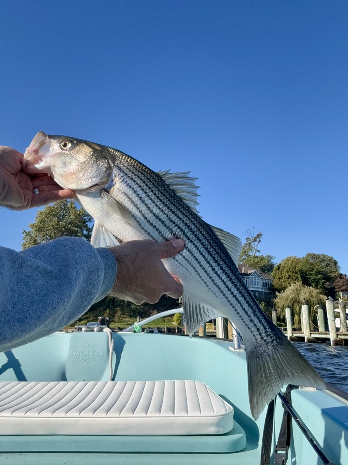 The fishing has heated up across the Chesapeake Bay region just as the weather has taken a turn toward autumn temperatures. Regionwide, anglers are finding large amounts of bait in the rivers, birds swirling above, and the striped bass bubbling all around as they feed heavily and fatten up before winter sets in. Stripers—belovedly called rockfish ’round these here parts—are all-in for the baitfish buffet that the Chesapeake provides during mid-fall. And though the fishing was a bit disappointing in the Severn River during the summer months (for me, at least), I can confidently say that the schoolies have now filled in the river to feed and are active. I found them consistently this week (as did several others reporting their catches). It’s unofficially some of the best fishing of the year—what we anglers know and love as Rocktober!