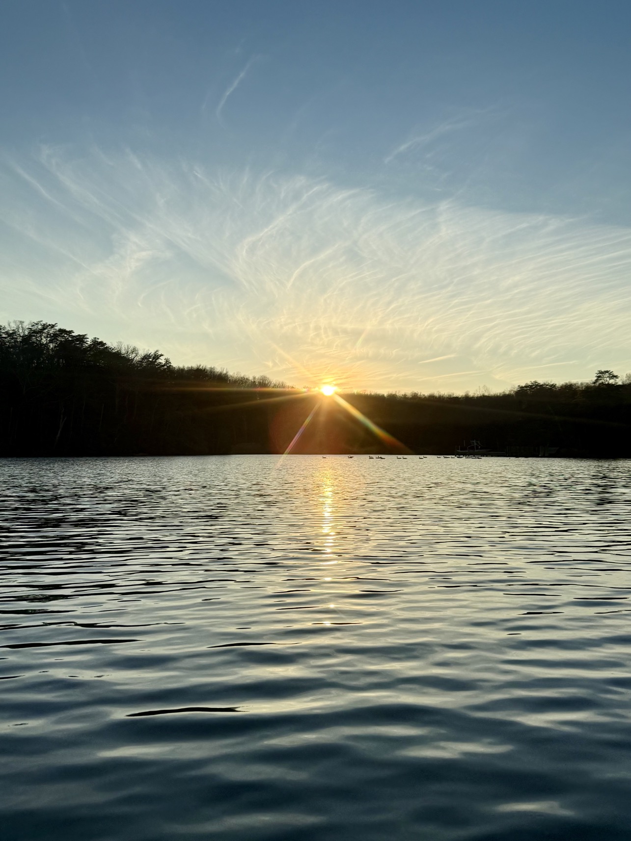 I paddled to the end of the creek and began casting around the sunny shoreline with an up-sized, white paddletail (3”) on a 1/8oz jighead. First cast was hit by a nice pickerel that showed himself, went airborne, and shook the hook. Elation and defeat in all of 5 seconds. Second cast, another hit! This time, I pulled in a small pickerel and released him safely. Next cast, another hit and a larger pickerel boated and released. This solid action occurred during the last hour of daylight until the sun dropped below the trees and the fish had had enough of me—or wised up to the presentation. I hooked into maybe 15 fish and landed 8 or so.
